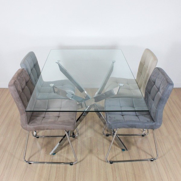 Mesa Insignia Rectangular 1.50 Patas Cromadas, vidrio templado