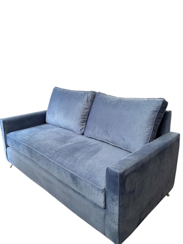 Sofá clásico, confeccionado en pana antimanchas; patas bocha metal y placa alta densidad.